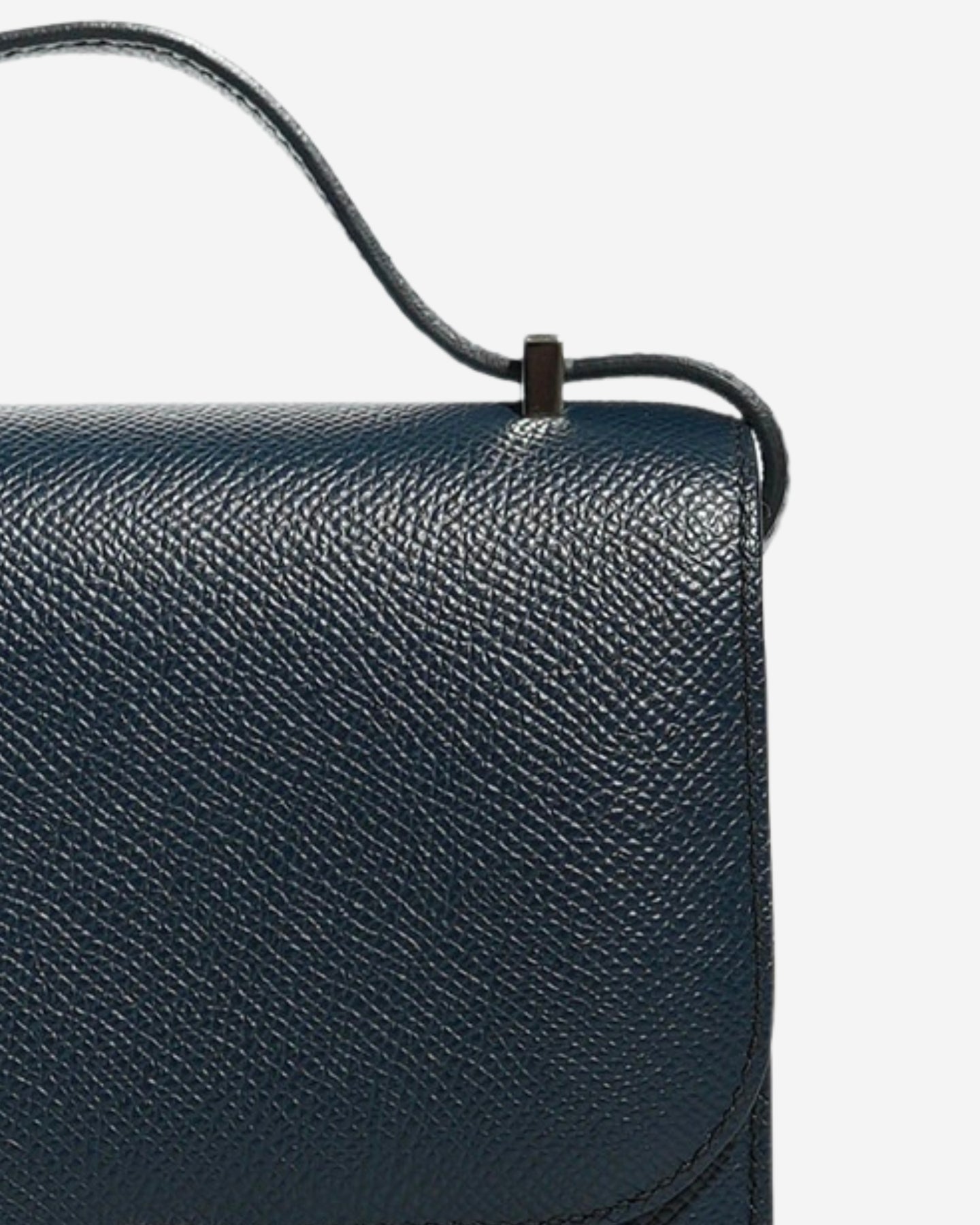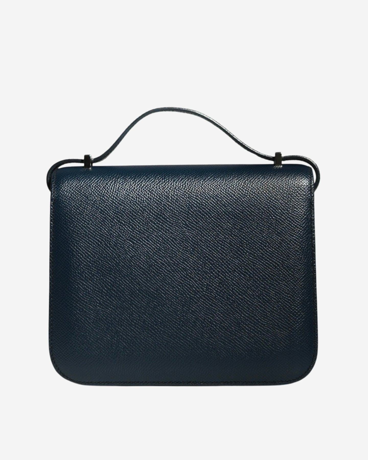 Hermès Constance HSS 18 confeccionada a mão nos ateliês da Hermès em 2020 (Selo “Y”) em couro Epsom cor Bleu de Prusse no exterior - que destaca perfeitamente o hardware em paládio - e no interior em couro Swift na cor Beton.