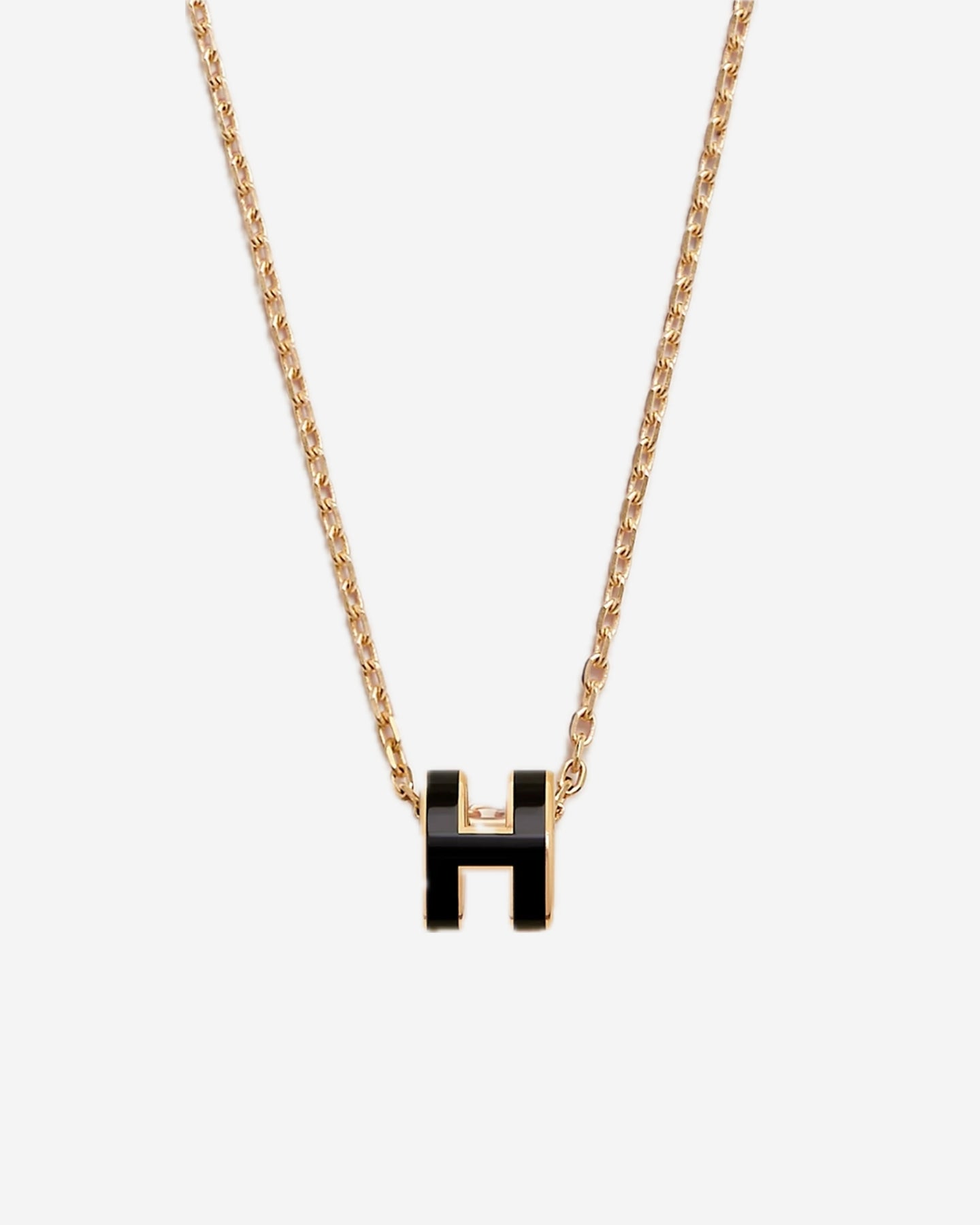 Pingente em metal laqueado preto folheado a ouro amarelo.