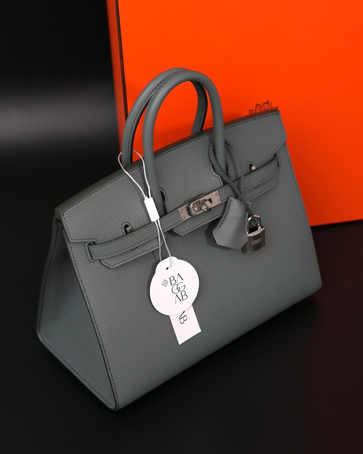 Hermès Birkin 25 Sellier confeccionada a mão nós ateliês da Hermès em 2025 (Stamp “K”) em couro Epsom na cor Verr Amande, um tom de cinza intermediário, suave, versátil e elegante, introduzida a biblioteca de cores da Hermès na coleção de Outono de 2019. Com significado “Verde Amêndoa”, faz referência a cor da casca de amêndoa fresca.